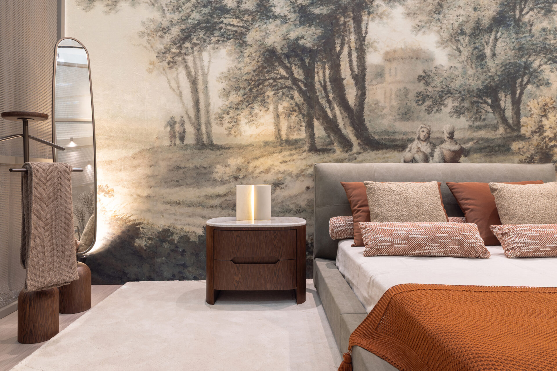 La línea Sammy está disponible en versiones de espejo de pie y perchero. Las piezas, construidas a partir de una imponente base de madera y estructuras metálicas, forman una composición que aporta toques de Art Déco mediante la valorización del objeto como escultura funcional y la elegancia de su silueta. En el espejo, la estructura metálica sostiene con ligereza una superficie ovalada, creando un contraste entre materiales.