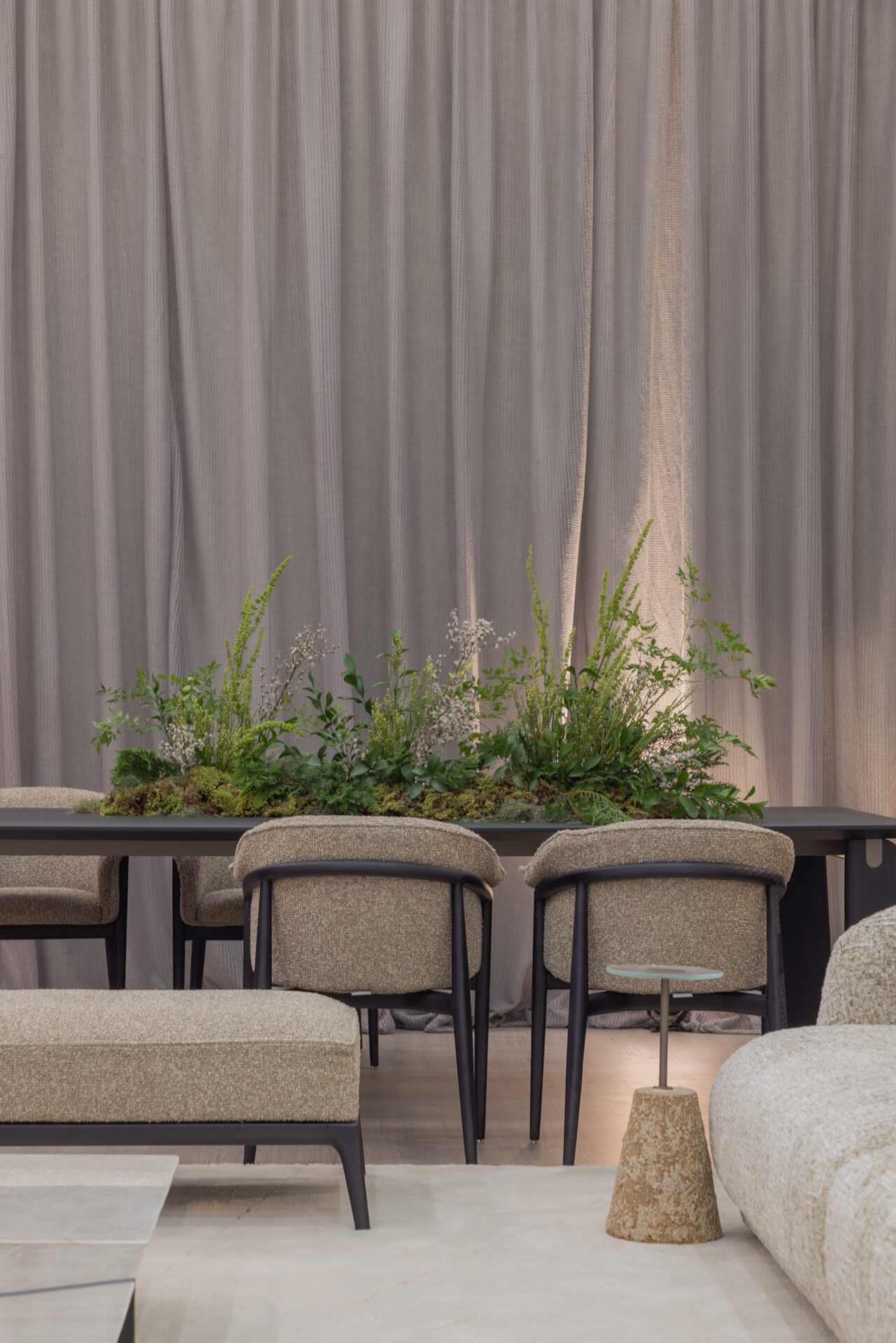 A mesa Accord é uma concentração de materiais e acabamentos naturais, combinados cuidadosamente, que se eleva a partir de uma base em formato cônico ou cilíndrico, feita em cerâmica, que apoia uma fina haste e um tampo redondo, ambos feitos em metal e com diferentes opções de acabamento.