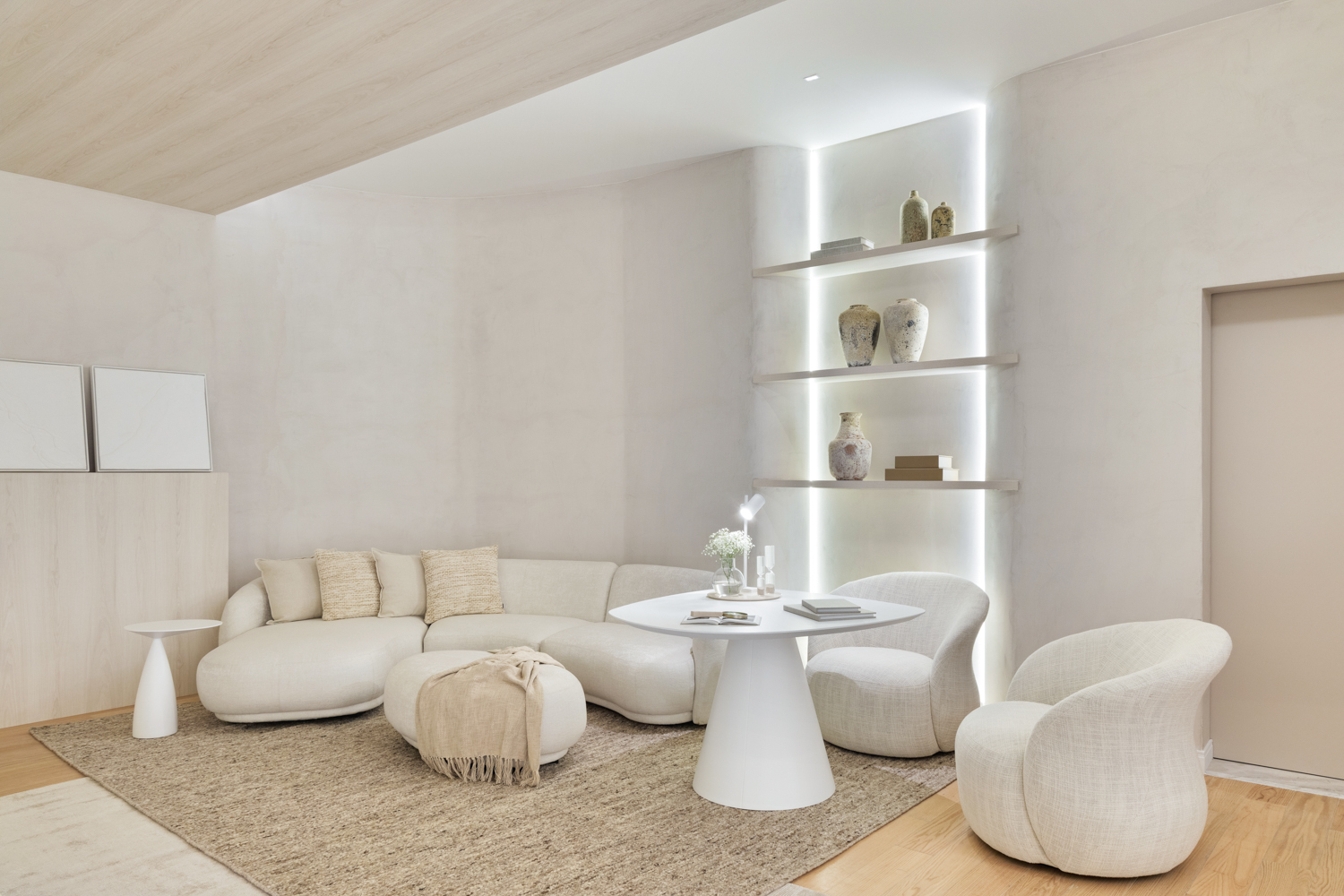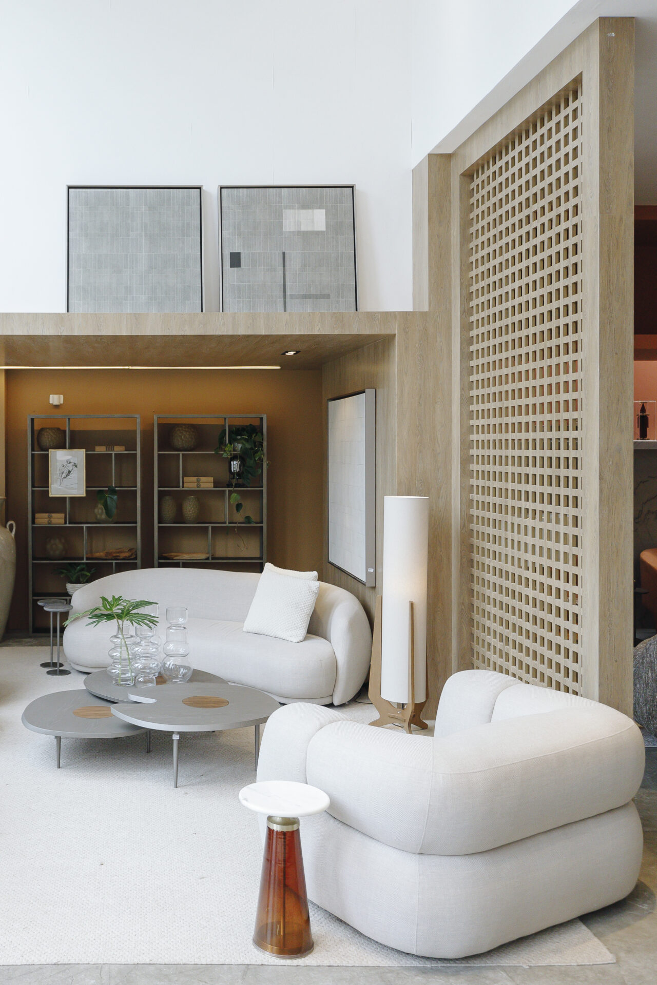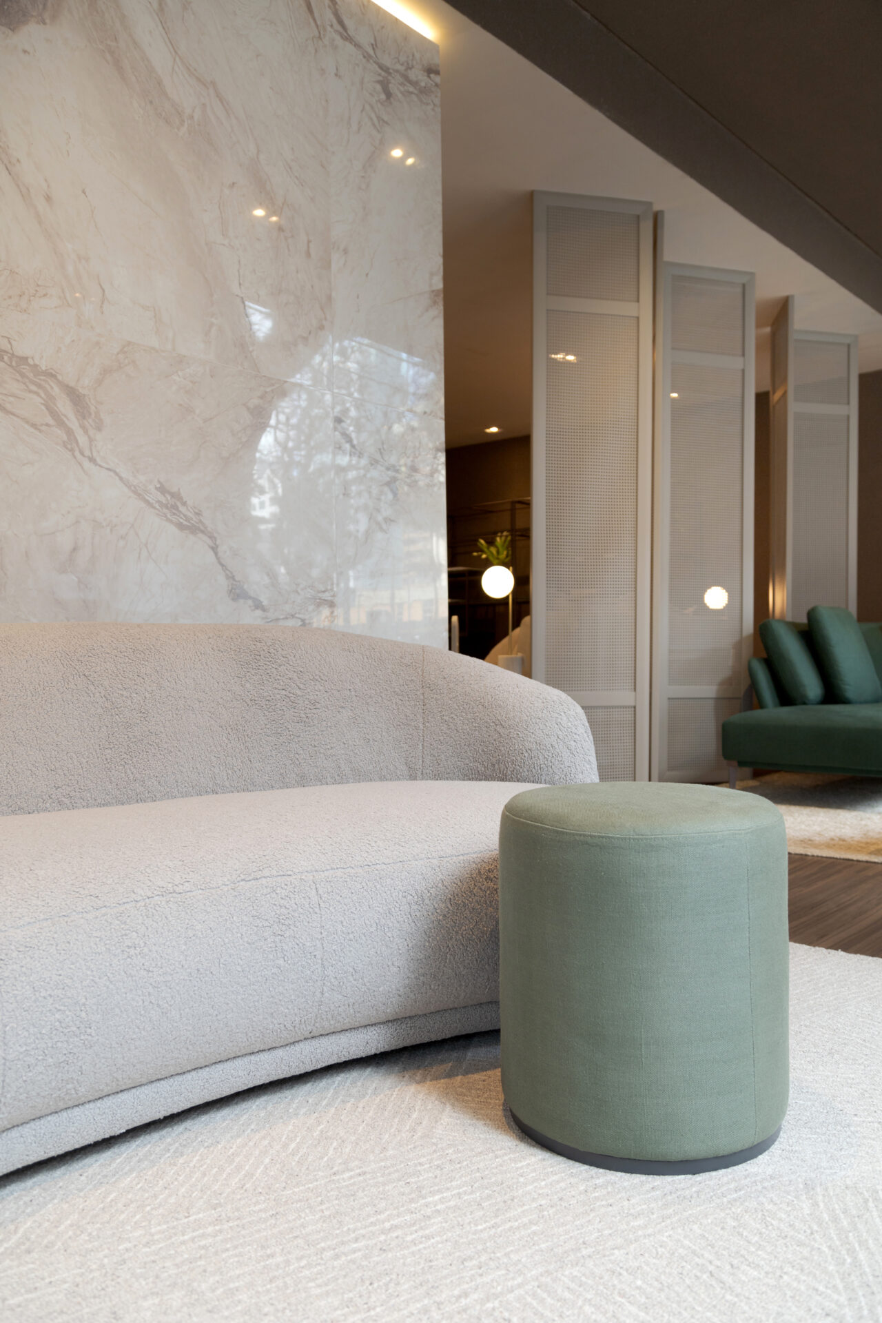 Dependendo da proposta do sofá, o tecido pode estar sempre retilíneo ou então mais disforme.