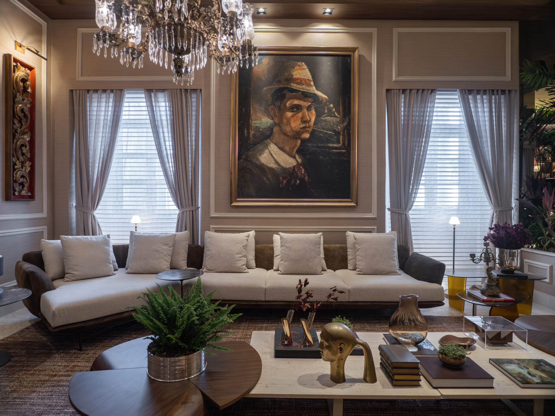 Dependendo da proposta do sofá, o tecido pode estar sempre retilíneo ou então mais disforme.