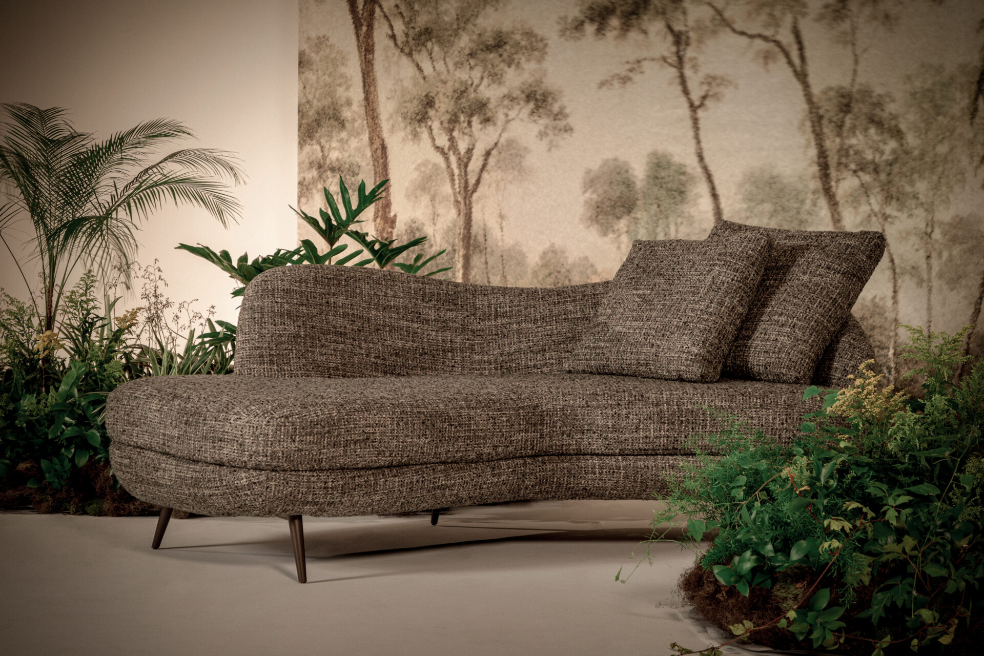 O sofá Tassel tem curvas emotivas que evocam fluidez e delicadeza como se assumisse uma função poética. É uma peça que encanta pela silhueta escultural e eleva todo o cenário ao redor. O assento aéreo e o encosto abaulado, levemente angulado, do Tassel criam uma composição singular que combina ergonomia e beleza, enquanto os módulos curvos e a chaise avulsa permitem composições orgânicas e envolventes.