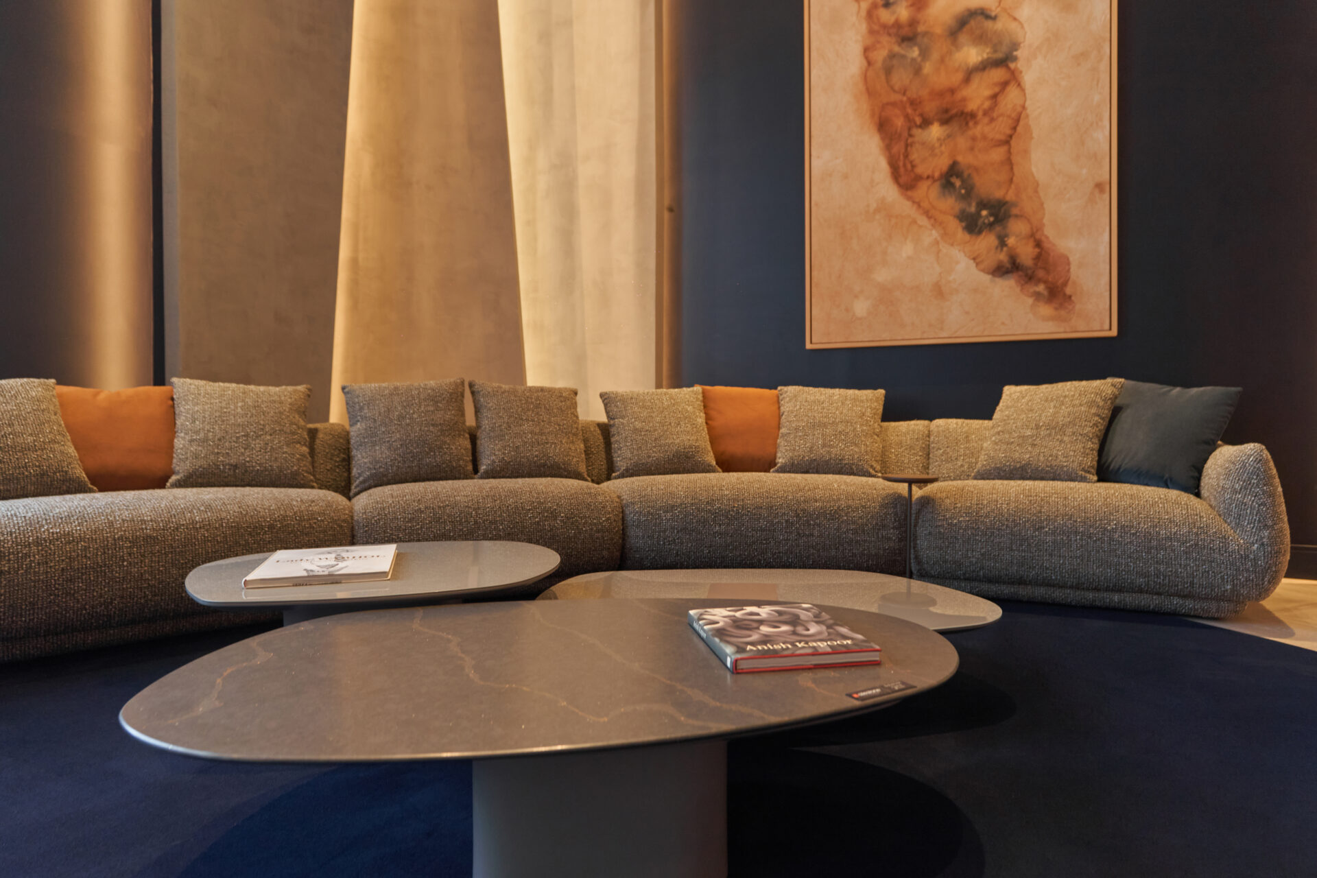 Dependendo da proposta do sofá, o tecido pode estar sempre retilíneo ou então mais disforme.